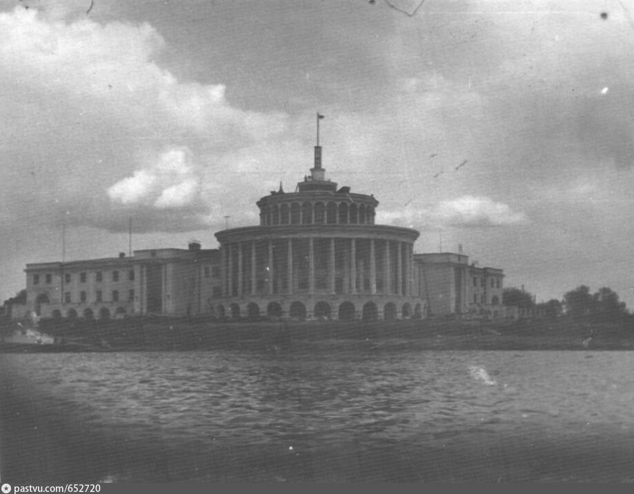 В видеоролике /p/647745?hl=comment-1440078 вы могли увидеть похожую фотографию 1958 года из архива Московского речного пароходства #484820. Здесь - фото год спустя. Отличие между снимками, которое мы увидели, в том, что скульптуры по центру колоннады в 1959 году нет. На фото 1958 года заметно, что нет ветра и у вокзала отсутствуют суда, а здесь, на снимке, и ветерок дует, и что-то пришвартовано. А часы на обоих снимках отсчитывают года до момента остановки и обрушения.Описание: https://vk.com/tver_nostalgia?w=wall-131814606_8742 📍 набережная Степана Разина, Тверь, Тверская область 📅 Примерно 1959 год 📱 Мы в ВК #ИсторияФлота #PastVu