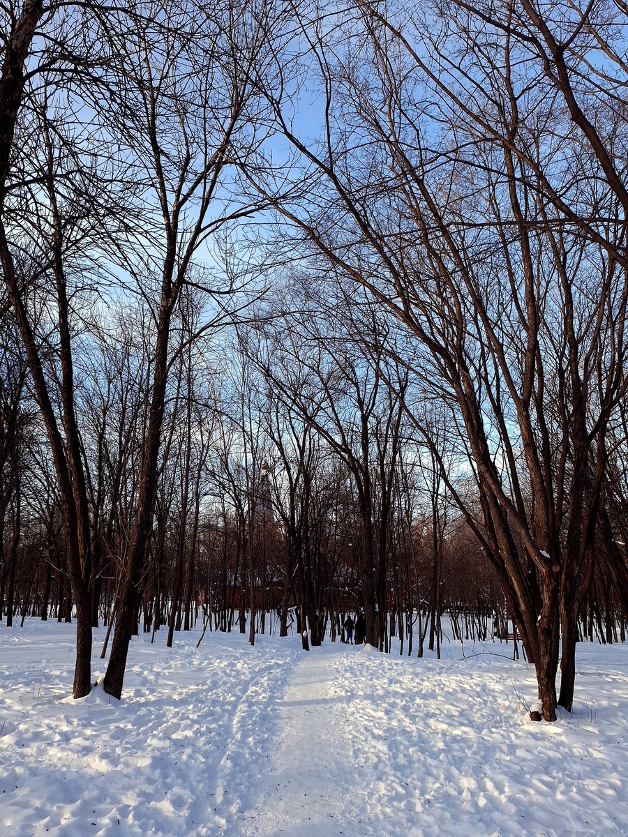 А через некоторое время, зашла в отдаленный уголок парка, смотрю, мужчина стоит задрав голову. Оказывается он тоже рассматривал этого дятла. Я полезла в сугроб и попыталась сфотографировать птицу экзотическим способом - на смартфон через бинокль. Но у меня не получилась. Правда, сняла просто на смартфон немного размазанное видео.