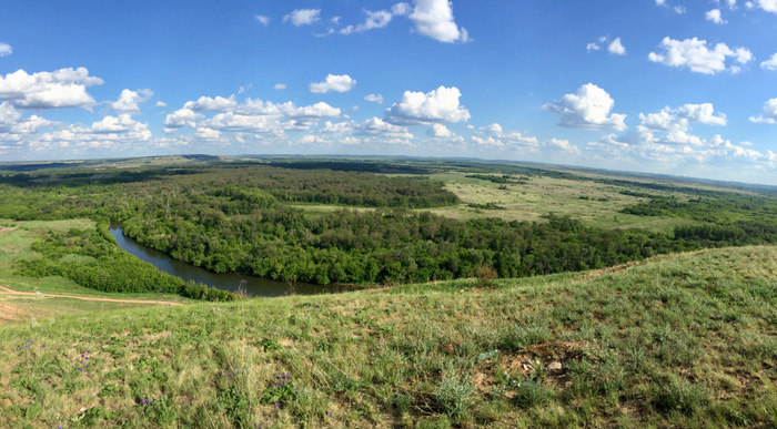 Есть в Оренбургской области вот такое замечательное село. Только попробуйте произнести вслух - Верхненовокутлумбетьево. Между прочим, одно из самых длинных географических названий в нашей стране. Находится Верхненовокутлумбетьево на северо-западе Оренбургской области, на Бугульминско-Белебеевской возвышенности. Это степи и лесостепи, много пещер. Такие ландшафты привычны: Или такие: Село расположено на правом берегу реки Большой Кинель. Собственно, вот так оно выглядит со спутника: Появилось село в 1780 году. Назвали Шаркаево, что от татарского «шер каен» пошло - «повсюду берёзы». А современное название связано с именем Котлымбет или Кутлумбет, правда, я не нашел ни одного человека с таким именем. Историю этих мест особо не изучали, но она тут определенно была - есть данные о находках курганов и следов поселений бронзового века. Через эти места с 18 века проходил тракт, соединяющий Оренбург с Казанью и Москвой, поэтому жизнь поселка была напрямую связана с обслуживанием дороги. Ну, та