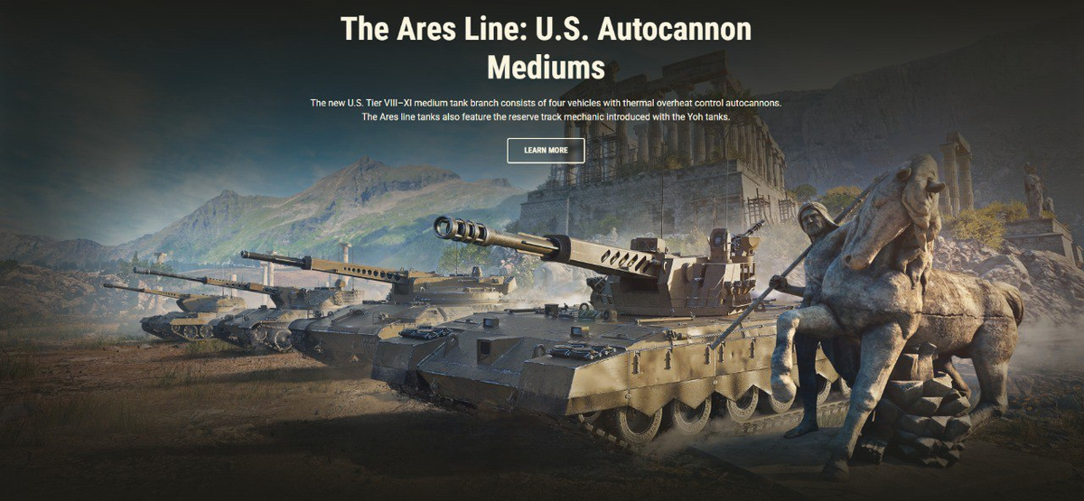 Главной темой для хайпа стал факт отсутствия перезарядки на пушках, вместо которой - механика перегрева, которую тестировали на Йохе из Шакального огня и которая присутствует на Лесте на огнеметных тяжах, что интересно, тоже американских. Техника объективно интересная, и для обзорной статьи я выбрал танк 10 уровня, Ares 90. Все же для НАШЕГО танкиста 10 уровни ближе всего.