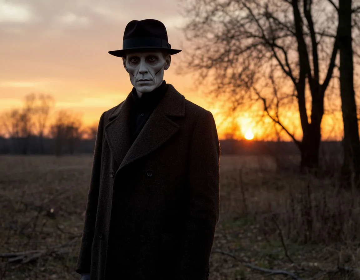 Он был высок, худ до костлявости, одет в длинное темное пальто, слишком легкое для поздней осени. Лица почти не было видно под полями шляпы, но Василий уловил неестественную бледность кожи и слишком четкий, будто вырезанный ножом, контур скулы. Самое странное — тени. Их было несколько, и они расходились лучами от незнакомца, не соответствуя положению закатного солнца — лежали вкривь и вкось, как упавшие спицы.