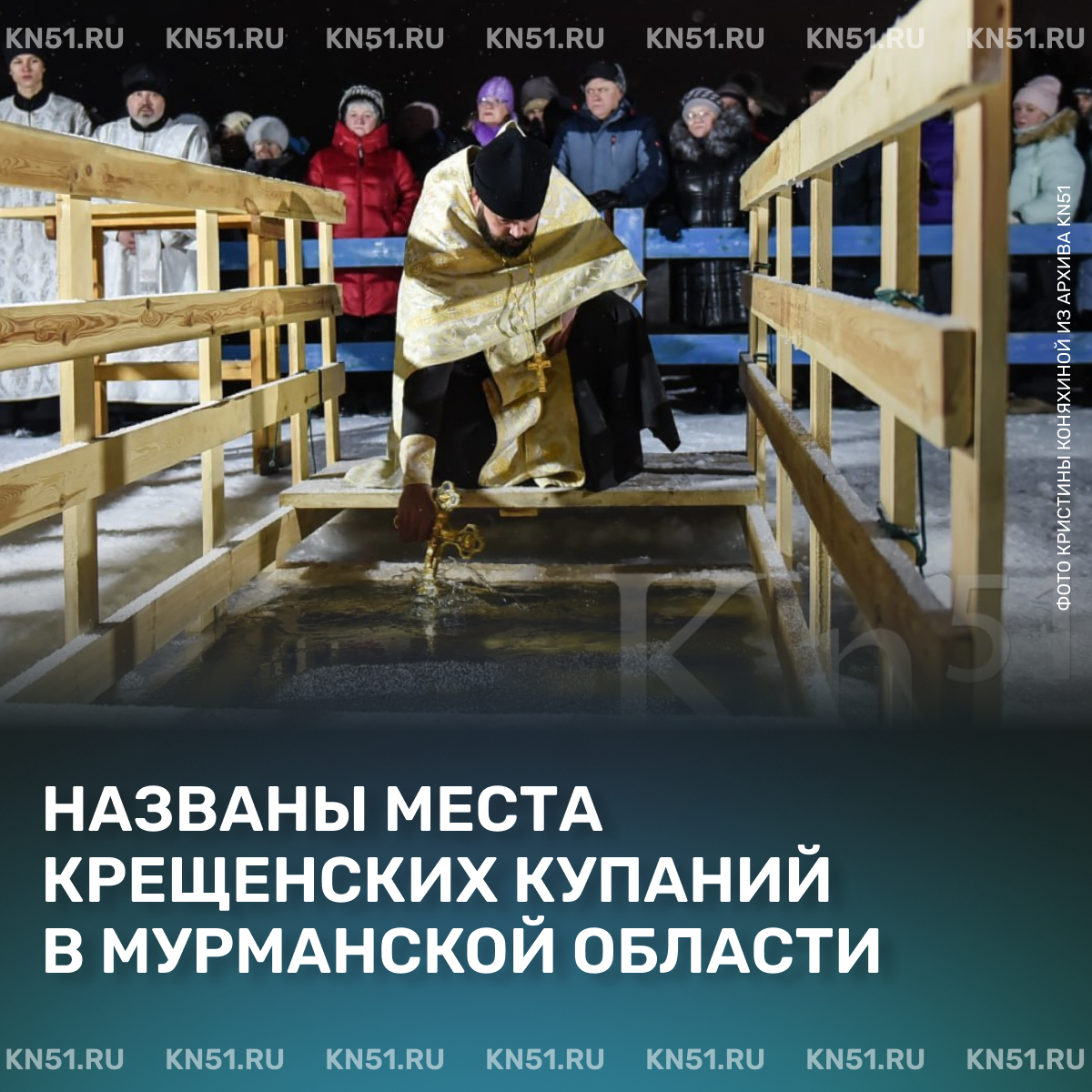 Жители и гости Мурманской области могут окунуться в воды заполярных водоемов в ночь с 18 на 19 января. Предварительно определены следующие места для крещенских купаний: - Мурманск: озеро Семеновское, озеро Среднее (территория «Сопки.Озера»), Иванов ручей (территория «Сопки.Озера»); - Мончегорск: озеро Лумболка (подробнее – по ссылке); - Оленегорск: озеро Комсомольское; - Кировск: озеро Глубокое; - Апатиты: озеро Имандра (в районе н.п. Тик-Губа); - Никель: озеро Куэтсъярви; - Ковдор: озеро Ковдоро; - Ловозеро: река Вирма (в районе бетонного моста между улицами Хибинская и Вокуева); - Заозерск: озеро Круглое; - Видяево: река Урица (в районе Свято-Никольского храма); - Снежногорск: озеро Арно; - Полярный: озеро Торфяное; - Гаджиево: озеро за домом №81. ❕ Представленный перечень мест для купаний может измениться. Поэтому накануне праздника лучше уточнить информацию на официальных сайтах и страницах муниципальных образований в соцсетях.