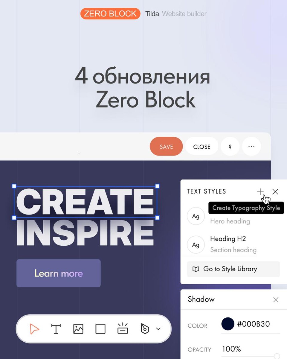 ⚡️ В Zero Block появилась удобная панель инструментов, возможность задавать стили элементов, не выходя из редактора, градиентный текст в