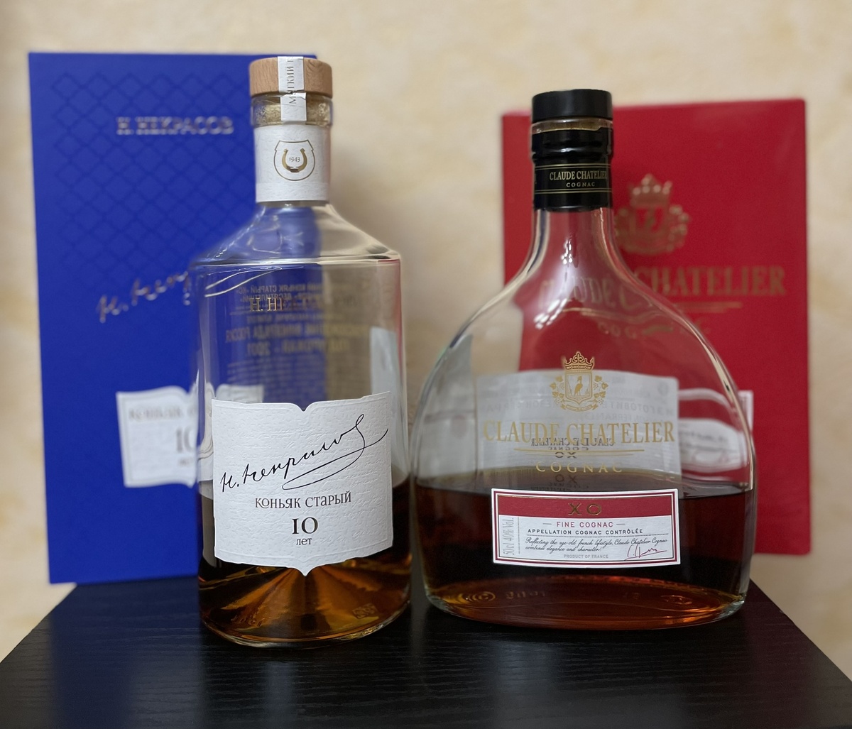 Н. Некрасов 10 лет, 40%abv vs Claude Chatelier XO, 40%abv