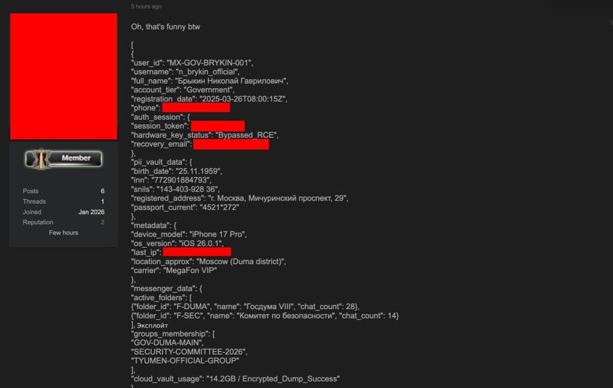 Макс взломали. О полном взломе госмеса заявили хакеры – речь идёт об утечке данных более 15 млн человек. Данные в том числе содержат полные ФИО, подтверждённые номера телефонов, токены сессий и хешей паролей, метаданные и исходные кода бэкенда и даже модуля шифрования. В качестве доказательства хакеры опубликовали данные из взломанной базы (на фото), принадлежащие депутату Госдумы Николаю Брыкину. От разработчиков госмеса комментариев не поступало. ❄ «Арктический Обозреватель»