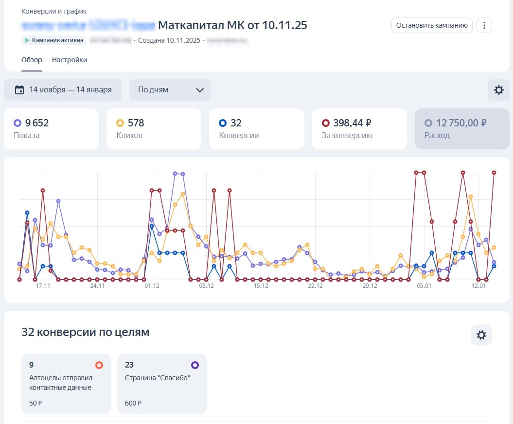 ? можем, а зачем? — Так бы ответили другие подрядчики. А мы взяли и запустили. И получили 32 лида по 398 рублей. Тема мат капитала важна в недвижимости в строительстве, потому что ее можно использовать сразу после рождения ребенка. А когда есть ресурс у строительной компании, то почему бы не воспользоваться возможностью. Для этого ненужны большие бюджеты, достаточно собрать адекватное предложение, которое вызывает доверие и показать его тем кому это важно.