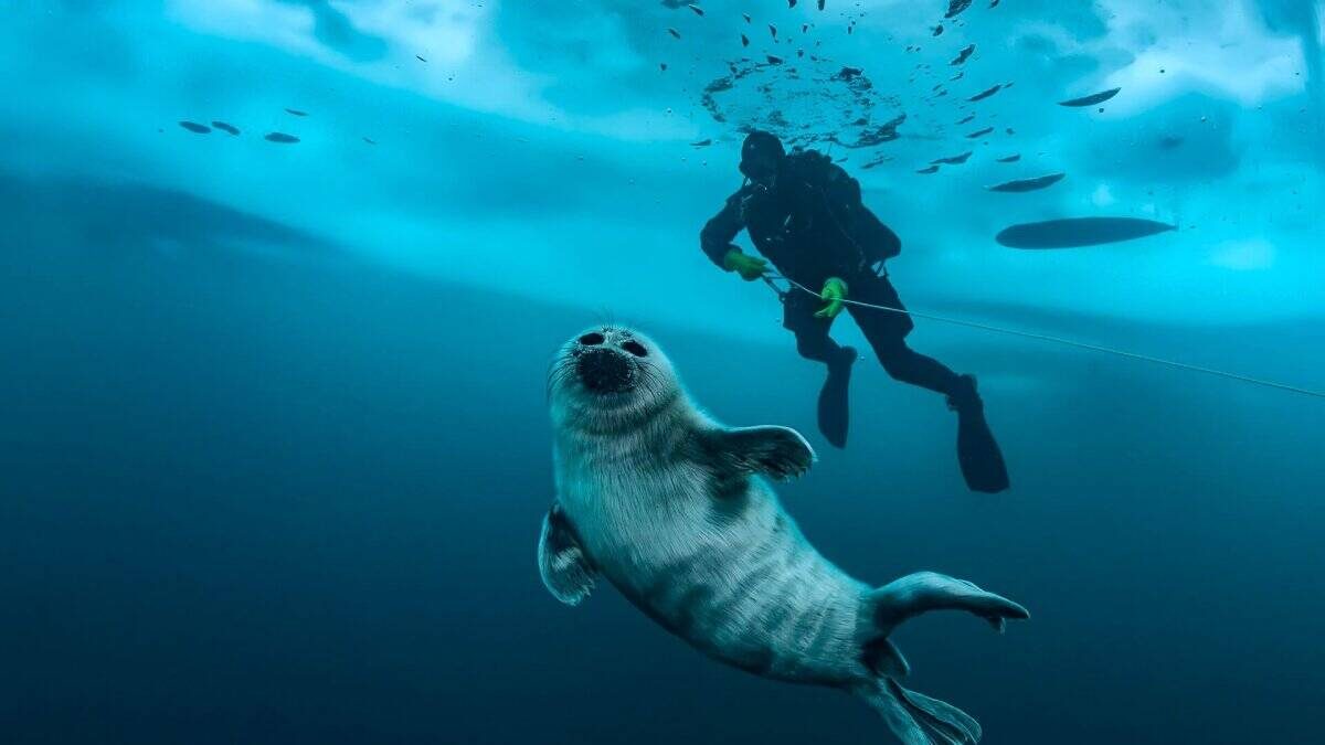 Задержав дыхание, смотрел на эти кадры с нерпочкой, которые сегодня снял дайвер во время погружения на Байкале. Сам он говорит, за это время полбаллона выдышал. Эту нерпу дайверы ласково называют Плюшей. Они давно ее заприметили. Посмотрите, подпускает очень близко. Стала чуть ли не ручной. Конечно, для дайверов это такая удача - понырять с ней рядом. Но и беспокоятся за нее - как бы кто не навредил. Нерпы очень в природе осторожны. А вы бы хотели заняться подледным дайвингом дна Байкале? Может быть и тебе посчастливится увидеть Плюшу?) Пост автора nik.istomin. Читать комментарии на Пикабу.