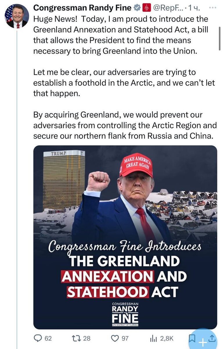 В Конгресс США внесли законопроект об «аннексии Гренландии и предоставлении статуса штата» США