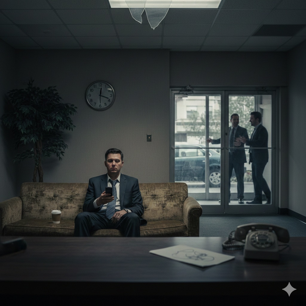 Он сидит в офисе. Смотрит на цифры. Слушает отчёты менеджеров. Менеджеры говорят: "Всё нормально, работаем".