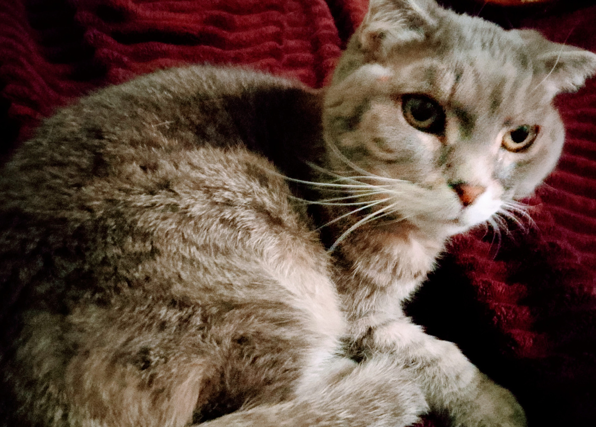 1. Соня очень ласковая и доверчивая. Типичная шотландка. Несмотря на бесчеловечное отношение к старенький кошке в конце жизни, прежние хозяева скорее всего ее не обижали. Ну или она из таких юродивых, как Дед, не утративший веру в людей даже после пережитых обид и жестокости.
