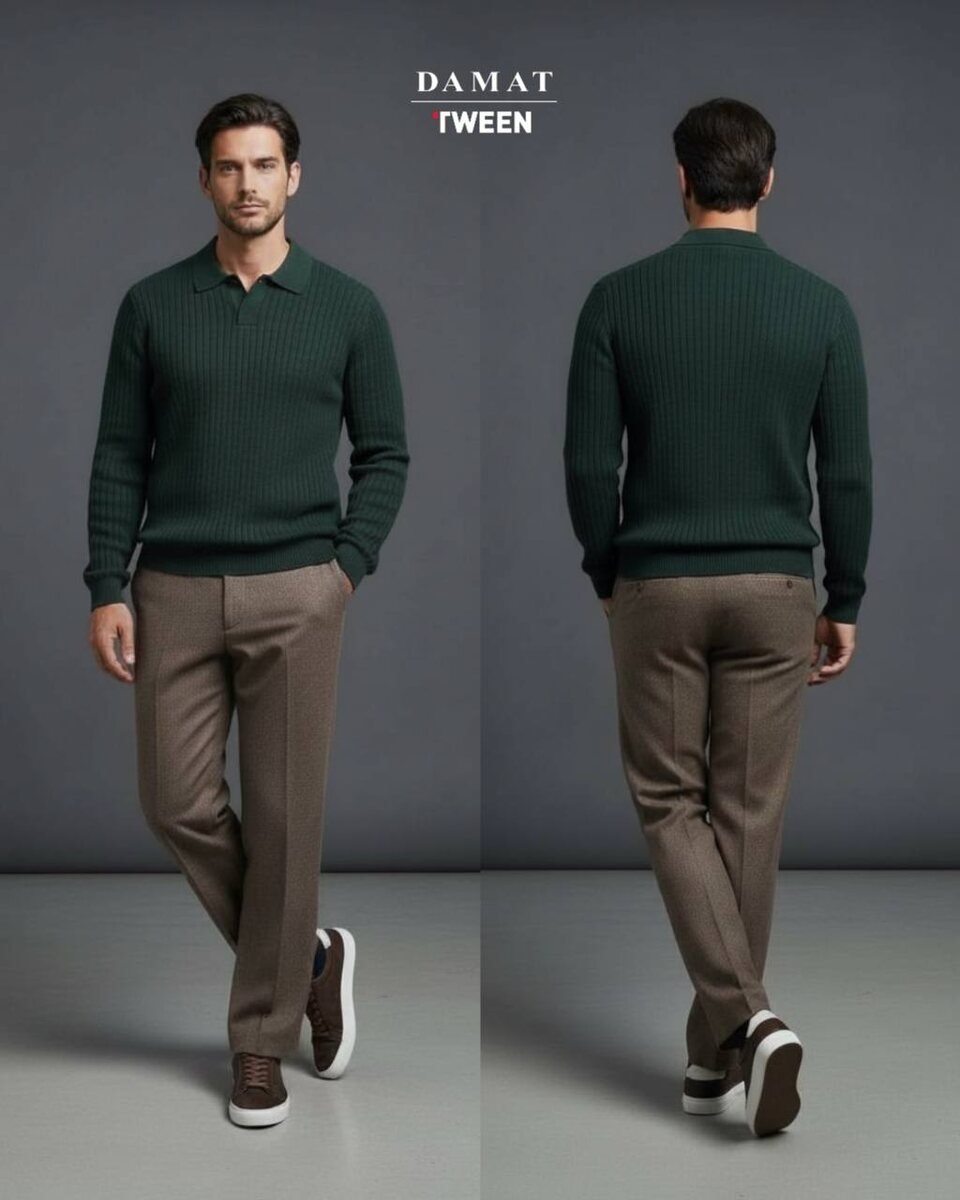 Трикотажное поло хорошо садится по фигуре, брюки держат форму и выглядят аккуратно весь день, а кеды добавляют комфорта🔥