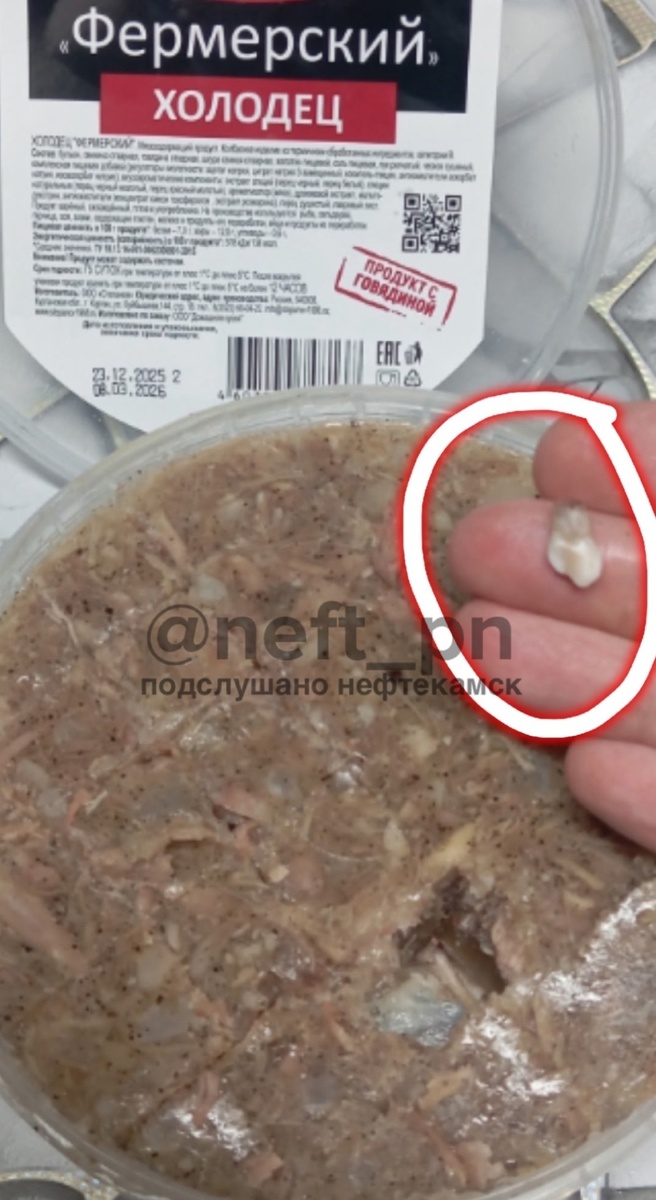 Купили в 5-ке холодец 🤢 обнаружили целый зуб и кучу костей.