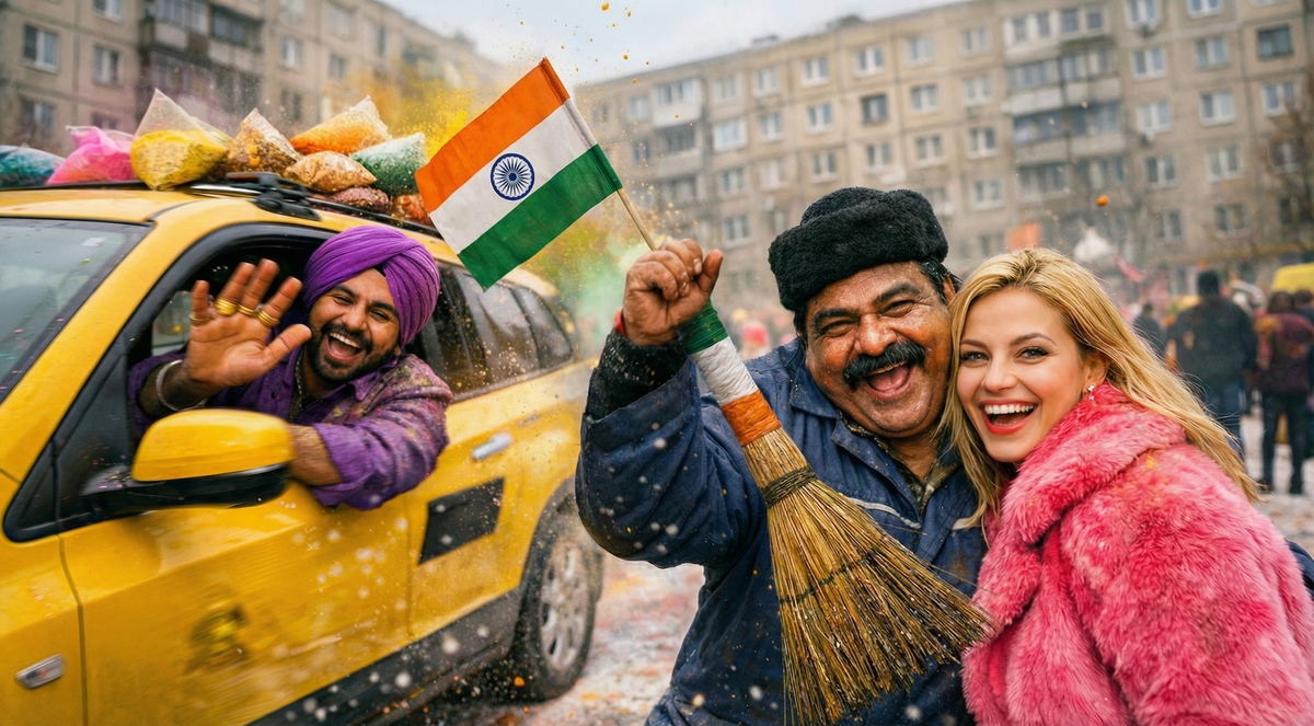 А россияне смотрят на дворников в робах с индийским флагом и недоумевают: что вообще происходит?