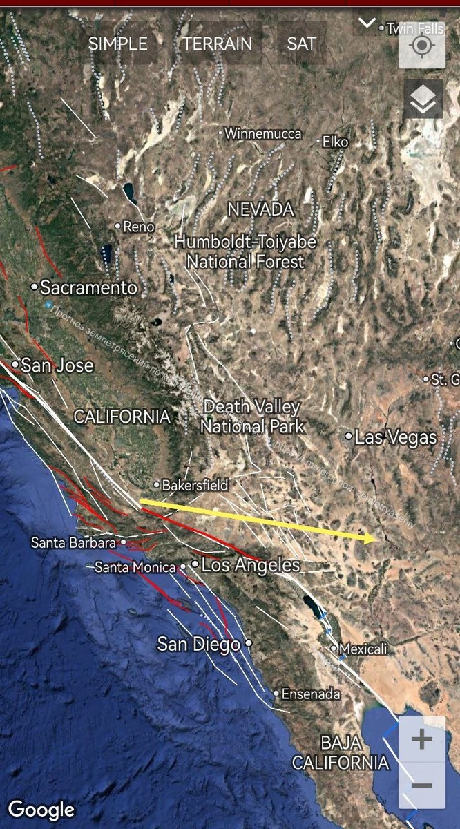 плиты (М6+) ===== The cloud structure over California today looks like a counterclockwise projection of the boundary of the Pacific and North American plates (M6+)