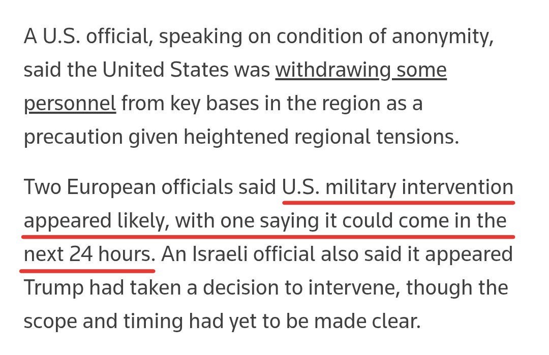 ❗️US attack on Iran could come in NEXT 24 HOURS — Reuters