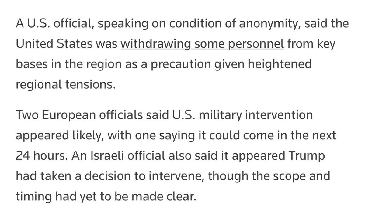AQSH kelgusi 24 soatda Eronga zarba berishi mumkin – Reuters