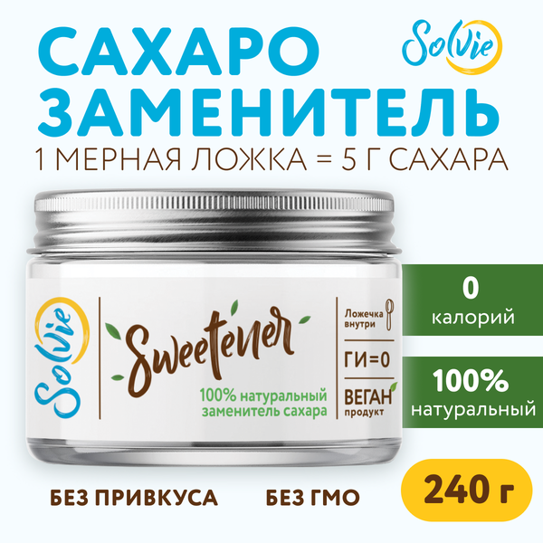 market.yandex.ruНатуральный Сахарозаменитель "Sweetener" (стевия, эритрит), Solvie, в баночке 240г, заменитель сахара — купить в интернет-магазине Solvie на Яндекс Маркете