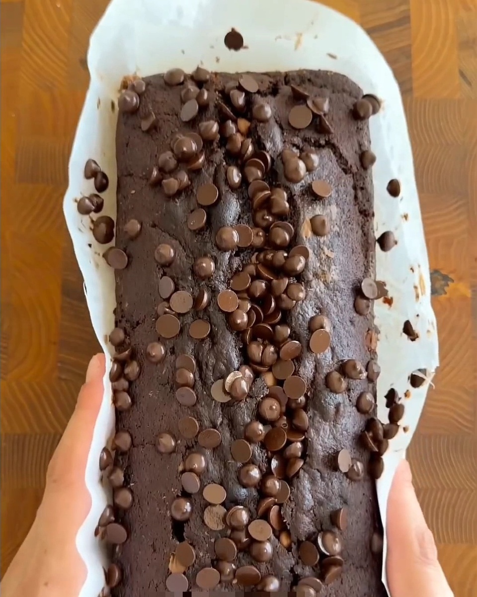 Измельчите в блендере бананы, сливочное масло, йогурт, сахар и яйцо. Затем добавьте сухие ингредиенты и шоколадные капли. Выпекайте в духовке без конвекции при 160 °C в течение 50–55 минут (проверьте готовность зубочисткой: если она выходит влажной — значит, кексу нужно ещё время ). После выпечки посыпьте сверху шоколадными каплями — они растают от тепла кекса .