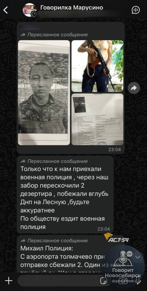 ». Такая информация сейчас распространяется в общих чатах села Марусино. По сообщениям из группы чата, один из них был одет в белую куртку, второй — полностью в чёрное. Будьте осторожны 👀 Говорит Новосибирск
