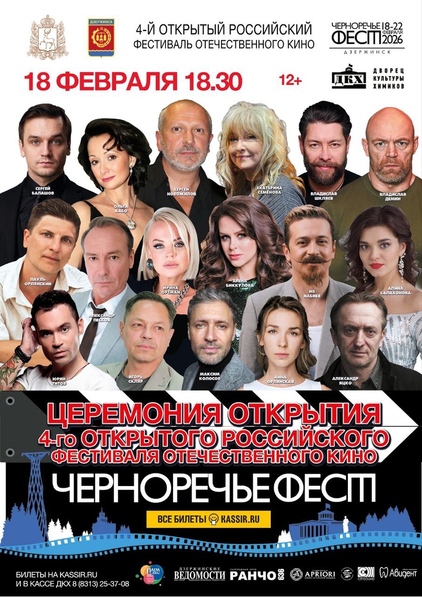 Хотите попасть на церемонию открытия IV фестиваля «ЧЕРНОРЕЧЬЕ ФЕСТ»? Принимайте участие в нашем конкурсе. С 18 по 22 февраля 2026 года в Дзержинске пройдёт самое яркое и масштабное кинособытие региона — IV Открытый российский фестиваль отечественного кино «ЧЕРНОРЕЧЬЕ ФЕСТ». В этом году к нам в город приедут звёзды кино и театров. Еженедельная городская газета «Дзержинские ведомости» объявляет розыгрыш трёх билетов на церемонию открытия кинофестиваля. Переходите в телеграм-канал «Дзержинские ведомости», присоединяйте к подписчикам и принимайте участие! Итоги розыгрыша: 17 января в 12:00 — определим трёх победителей случайным образом. Удачи!