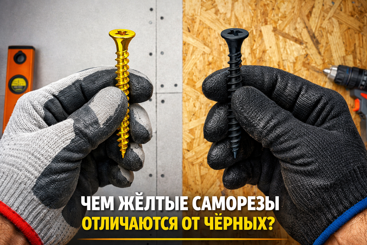 Ты наверняка хоть раз стоял в строительном магазине, задумчиво разглядывая два ящика: один — с дешевыми угольно-черными саморезами, другой — с блестящими золотистыми. На первый взгляд кажется, что разница только в цвете и цене, но на деле это два совершенно разных. Существует популярное мнение, что черные саморезы — самые крепкие. Это и правда, и нет. Черные саморезы делают из высокоуглеродистой стали и обязательно закаливают. Это придает им невероятную твердость: они острые и легко вгрызаются даже в плотные материалы. Однако у этой медали есть обратная сторона — хрупкость. Если ты начнешь закручивать черный саморез в сухой дуб или лиственницу без подготовки, то с большой вероятностью услышишь характерный «щелк» — шляпка просто отлетит, а тело останется внутри. Они совершенно не выносят нагрузок на изгиб или сдвиг. Желтые саморезы, как правило, делают из низкоуглеродистой стали и не закаляют. Они более мягкие и пластичные. Если дерево начнет «дышать» или конструкция немного деформирует