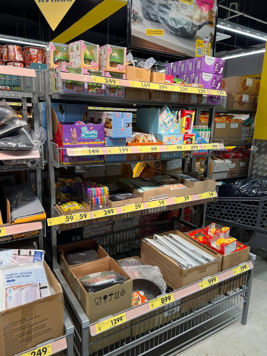 А вот и общий вид нашего «поля боя» со скидками и акциями. Тут можно найти всё: от гелевых ручек до сковородок за тысячу с лишним, если вдруг проснулся внутренний шеф-повар. 🛒 В такие отделы лучше заходить со списком, иначе выйдешь с новой пижамой, тремя масками и без денег на хлеб!