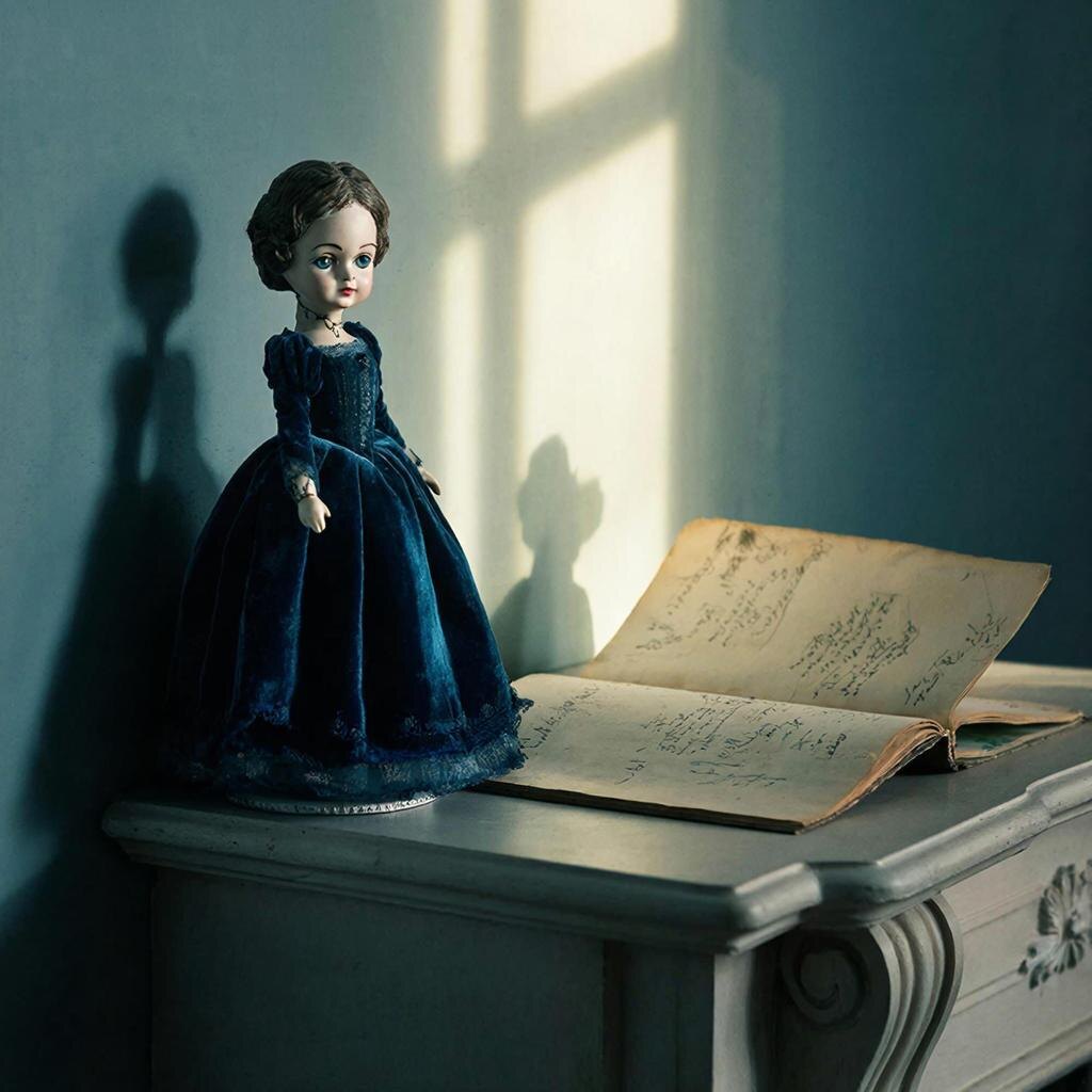 Кукла, однако, была шедевром. Фарфоровая дама викторианской эпохи в тёмно-синем бархатном платье с кружевами. Её лицо, ручной росписи, было не просто красивым — оно было одушевлённым. Мудрым и печальным. Стеклянные глаза цвета морской волны смотрели куда-то вдаль, а тонкие брови были слегка приподняты, словно от лёгкого удивления. Анна, сама художница-реставратор, пришла в восторг. Она назвала её Серафимой и поставила на каминную полку в гостиной своей однокомнатной квартиры.
