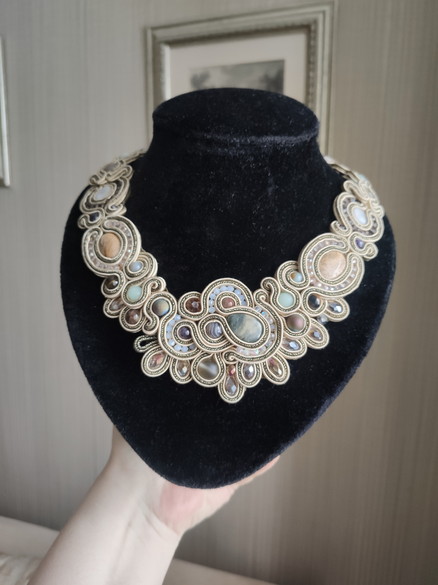 Перед Новым годом у меня случился тот самый редкий момент, когда заказы приходят почти одновременно. Сразу два. И оба — на сутажные колье. Причём на одинаковые. На первый взгляд — похожие. Мы с заказчицей немного скорректировали детали: где-то изменили оттенок, где-то форму, добавили акцент. Получился у каждого украшения свой характер Именно такие мелочи и делают ручную работу живой — даже повтор никогда не бывает точной копией. К одному из колье по желанию заказчицы добавились серьги. И комплект сразу зазвучал по-другому: более собранно, празднично. Предновогодняя история, когда хочется не просто украшение, а ощущение особого момента. Работая над этими заказами, я поймала себя на мысли, что люблю такие повторы. Они позволяют увидеть, как одна и та же идея может раскрываться по-разному. Чуть другое настроение — и украшение уже живёт своей собственной жизнью. В итоге получилось два похожих, но всё-таки разных комплекта. А теперь мне интересно: какой вариант нравится вам больше?