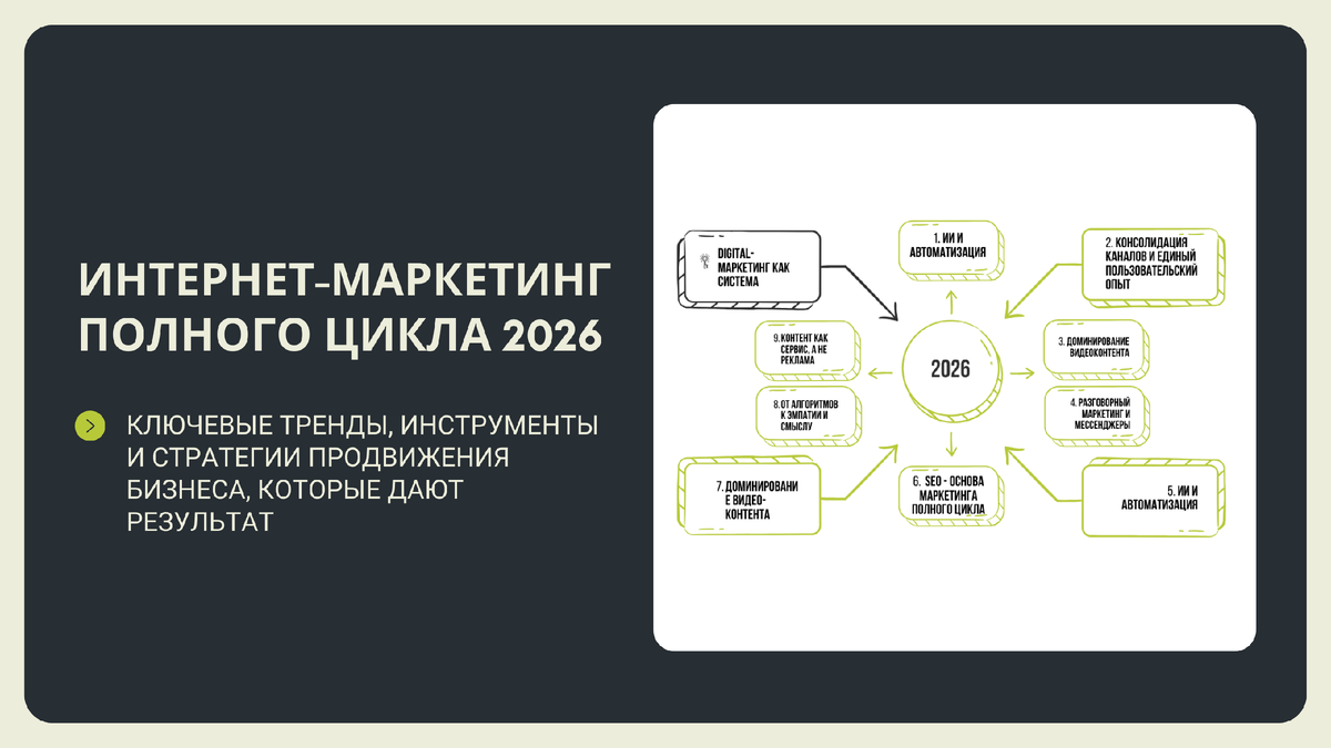 Это ключевой принцип digital маркетинга полного цикла в 2026 году.