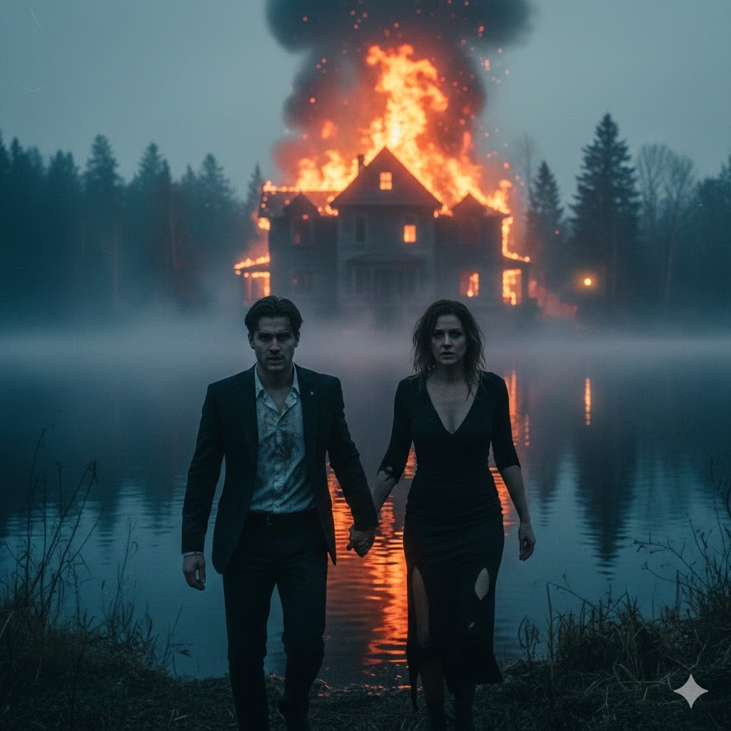Подплывая к берегу у дома, он увидел, что особняк охвачен огнем. Яркие языки пламени лизали ночное небо, отражаясь в озере кровавыми всполохами. Громов не собирался оставлять улик. Но Максим знал — Алина всё еще внутри. Она бы не бросила «свое» наследство, даже если бы оно горело.