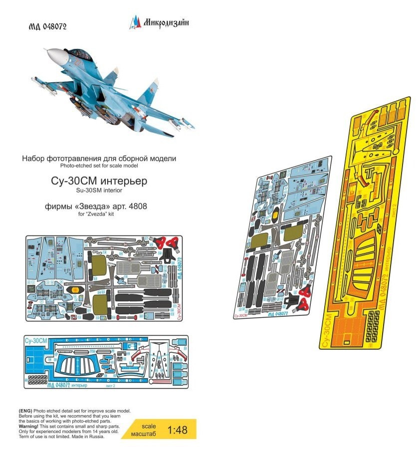 Севастопольская "Микродизайн" выпустила фототравление для деталировки модели Су-30СМ в масштабе 1/48 от "Звезды":