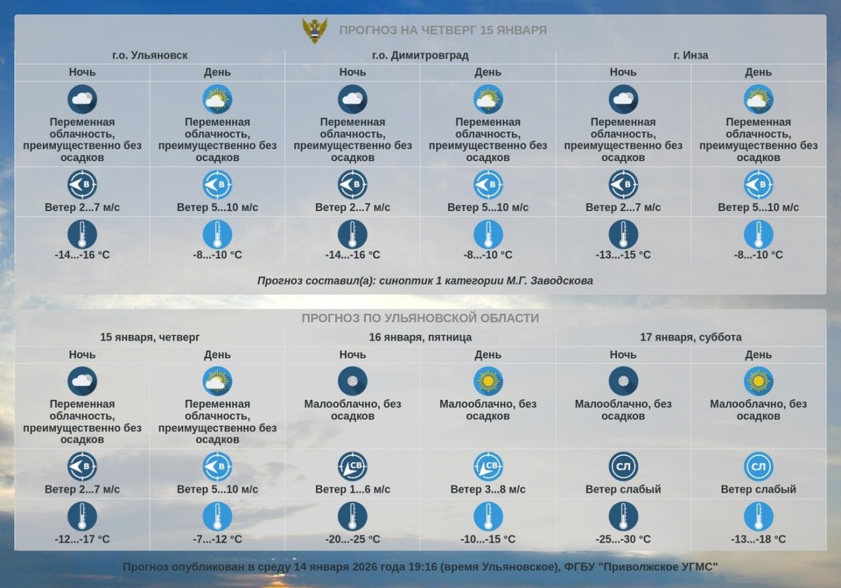 Прогноз погоды по Ульяновской области