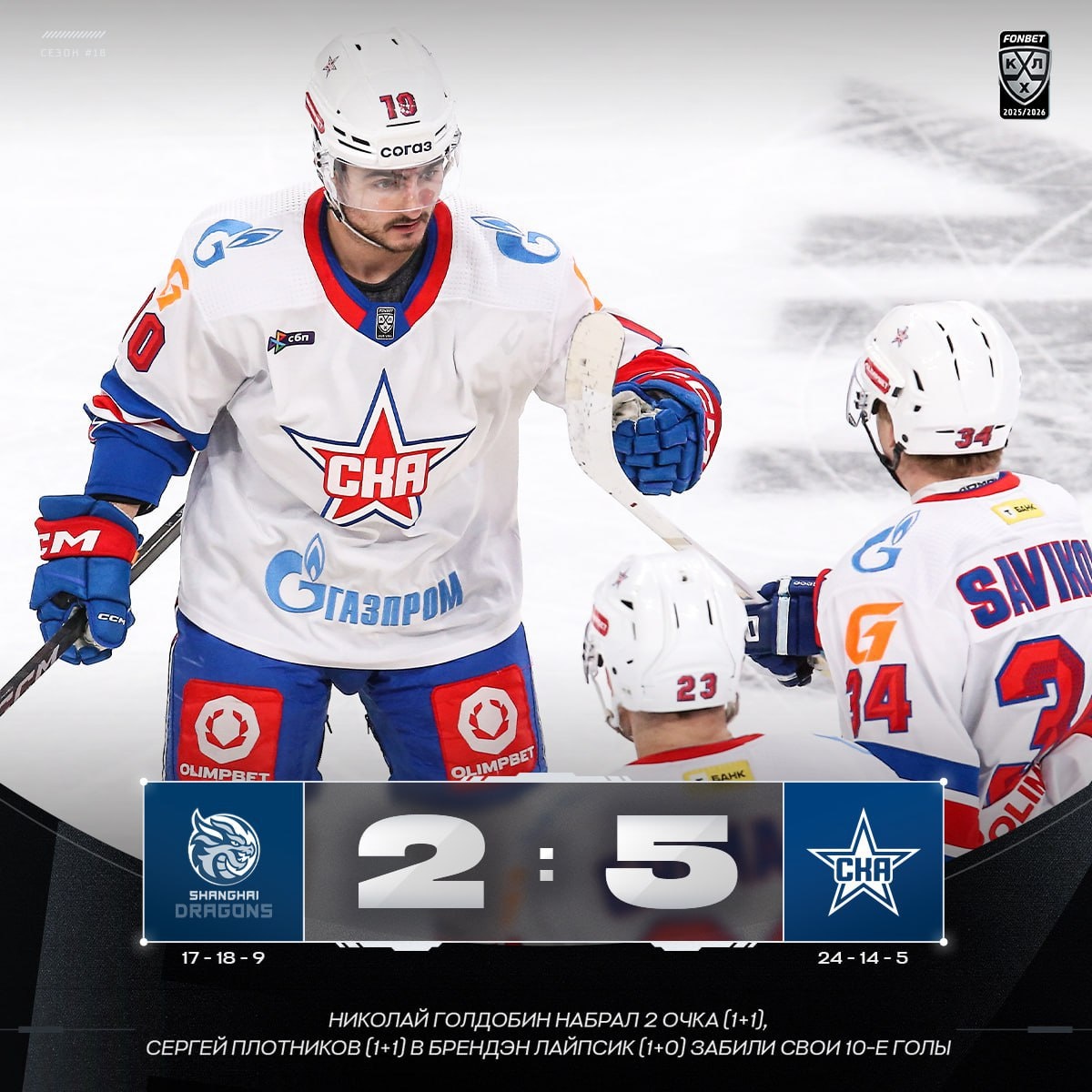 Надо сказать, что победы СКА над «Шанхайскими драконами» становятся все убедительнее и убедительнее