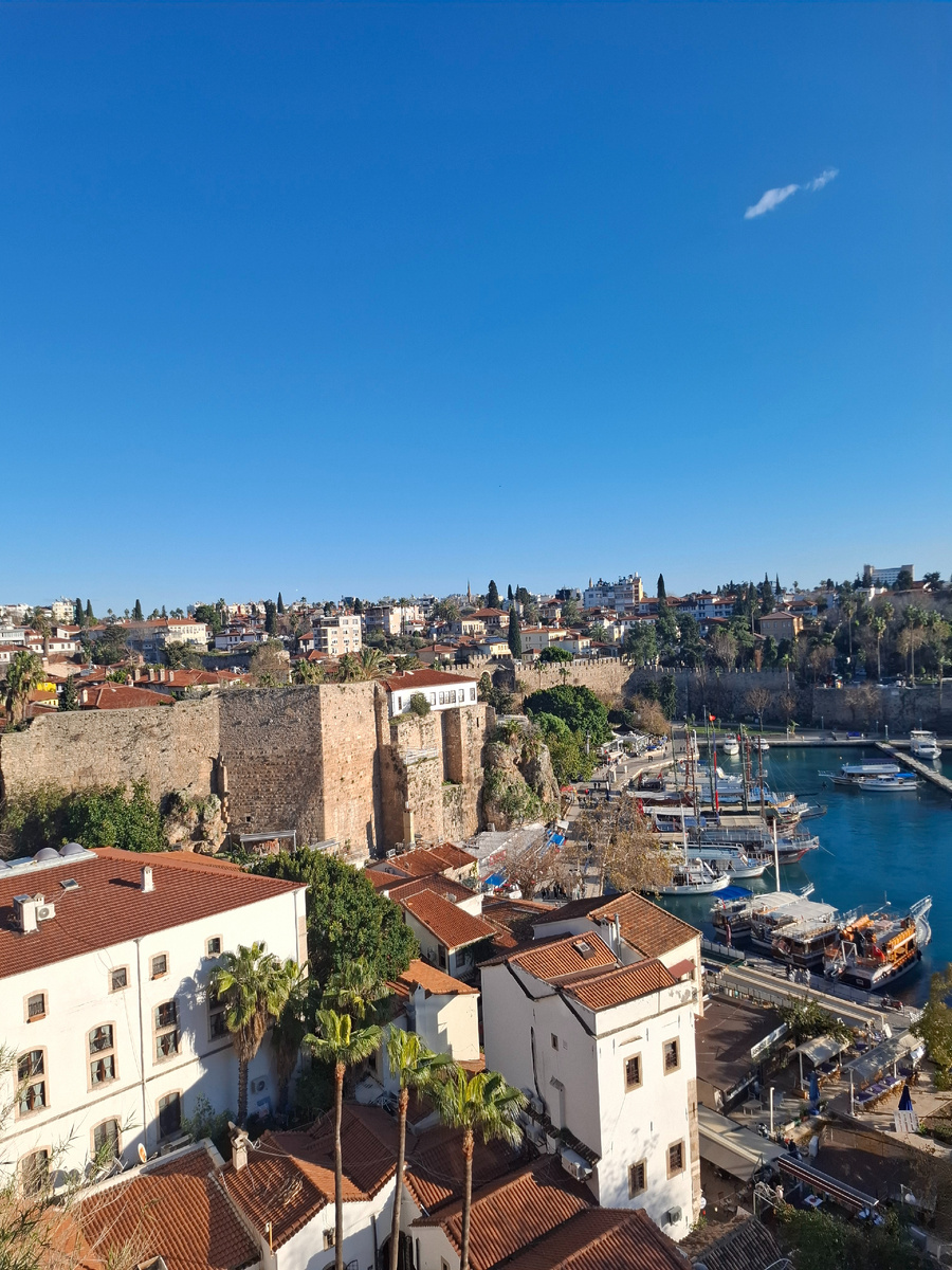 Вы только посмотрите, какие потрясающие виды открываются на море, горы и порт Антальи.