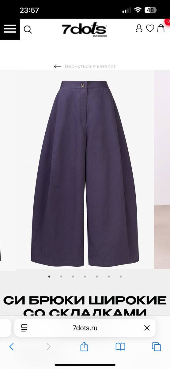 Кстати, не смотрите, что все на худеющих моделях. У 7 dots размерный ряд до xl. И вот эти брюки, которые я себе не успела купить, а сейчас брошу в корзину, в размере m мне были велики.