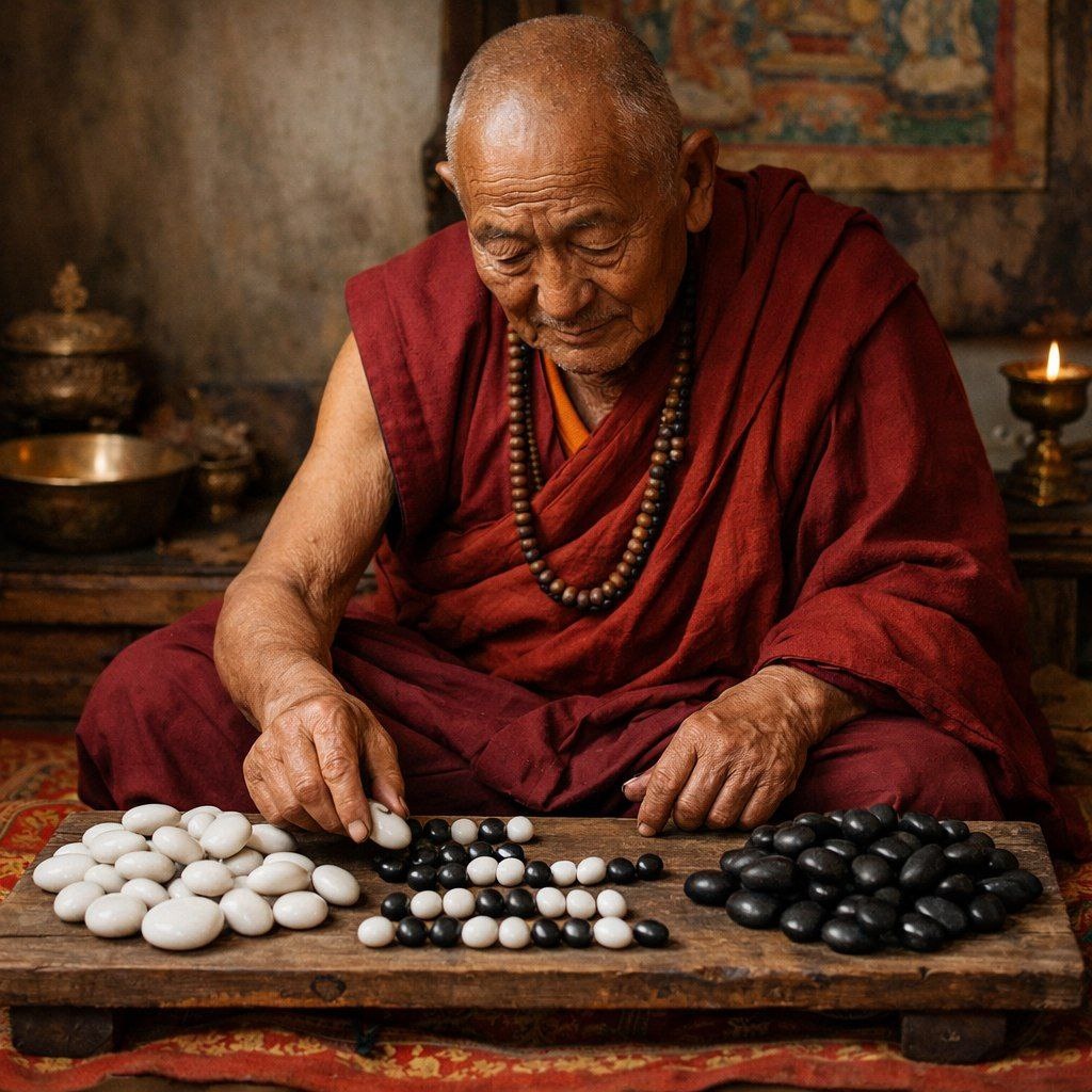 В древние времена, когда не было Кармического Дневника, монахи носили с собой мешочки с чёрными и белыми камешками