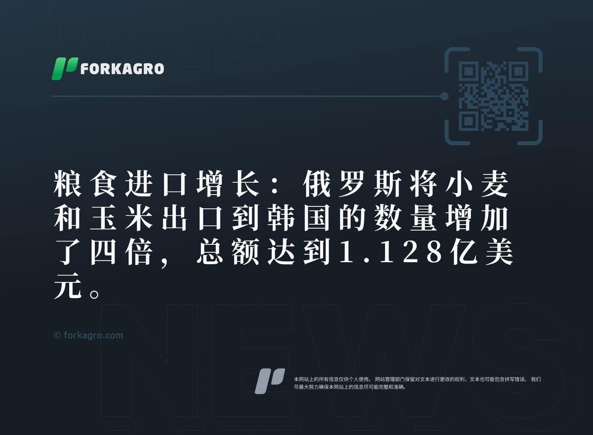 Рост импорта зерновых: Россия увеличила поставки пшеницы и кукурузы в Южную Корею вчетверо, общий объем достиг 112,8 млн долларов