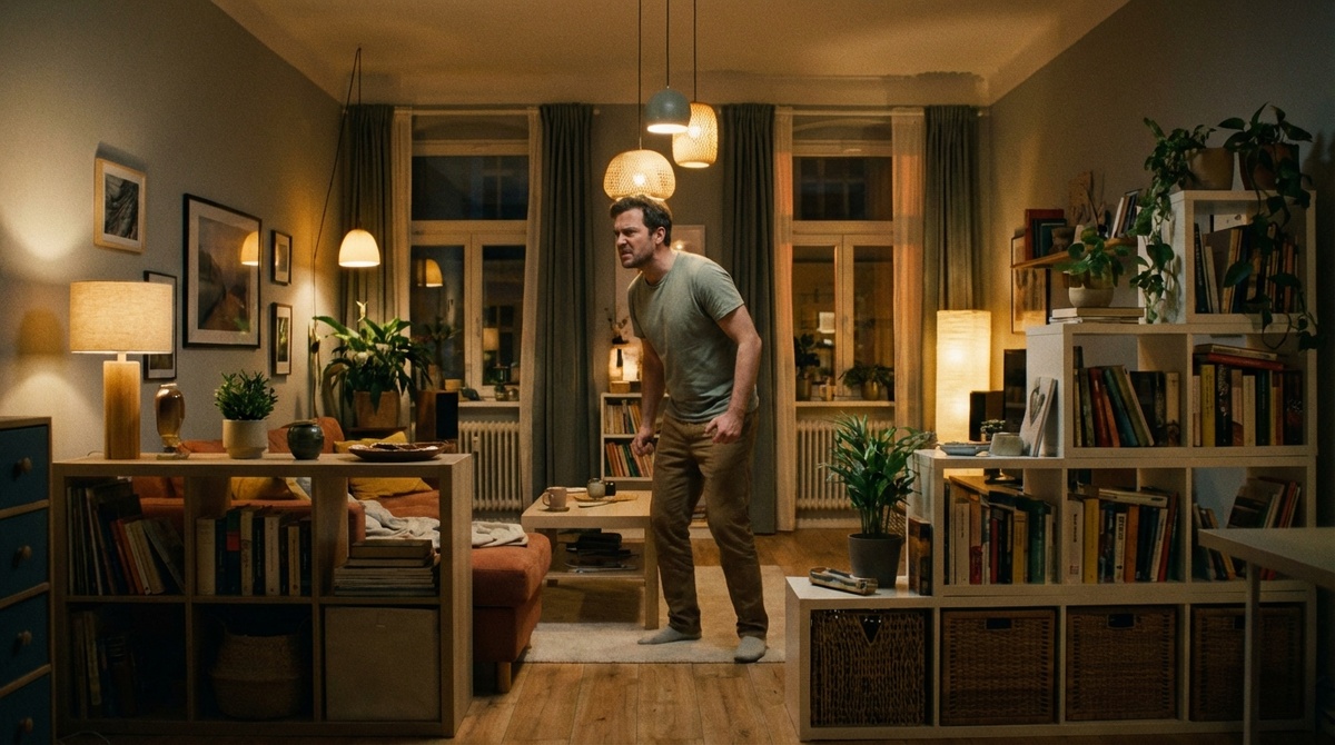Голова не выключается. И каждый вечер начинается с желания что-то погасить, но не до конца. Второе — выключатели «по схеме, а не по движению».