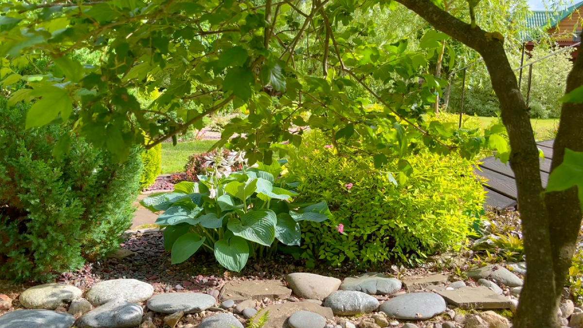 У нас хосты растут в разных частях сада с различными условиями выращивания, в том числе, и в рокарии. Хотя есть достаточно распространенное мнение, что хосты не сочетаются с камнем, и что им не место в каменистых садах, с чем я не согласна. Возможно, в садах камней строгого японского стиля, где доминируют камни, а растения вторичны и призваны подчеркивать красоту камней, хосты будут смотреться неестественно, а в любительском авторском или, даже дилетантском, придутся, вполне себе, к месту. Вопрос предпочтений. По крайней мере мне хосты нравятся практически в любом сочетании и на любом фоне.