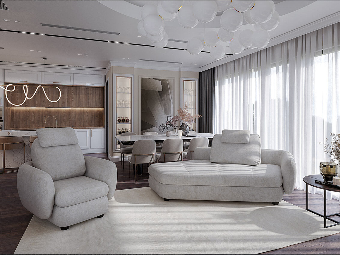 а клиенты — за комфорт на каждый день и ощущение собранного, спокойного дома. Многослойное наполнение сидений, гипоаллергенные приспинные подушки AIRON, аккуратные декоративные утяжки — здесь всё работает на телесное и визуальное равновесие.
