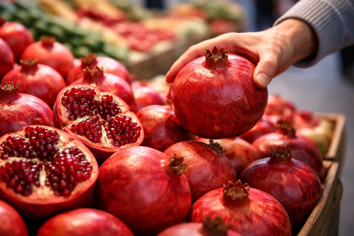 Гранат часто покупают «на глаз»: берут самый крупный, самый яркий или просто тот, что оказался под рукой. Но внешний вид у этого фрукта обманчив. Блестящая кожура не всегда означает спелость, а идеальная форма — сладкий вкус. При этом выбрать хороший гранат можно почти безошибочно, если знать несколько простых признаков. Распространённое мнение, что гранат должен быть тёмно-красным, работает не всегда. Цвет кожуры сильно зависит от сорта и региона выращивания. Спелый гранат может быть бордовым, розовым и даже светло-красным. Гораздо важнее не оттенок, а насыщенность цвета и его равномерность. Хороший гранат имеет плотную, сухую кожуру без мягких участков. Если слегка надавить пальцами, плод не должен проминаться. Перезрелые гранаты становятся слишком мягкими, а недозрелые — излишне жёсткими и «деревянными» на ощупь.