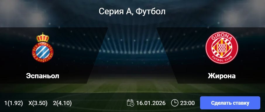 «Жирона», напротив, переживает эмоциональный подъем и показывает свой самый качественный футбол в нынешнем сезоне. Три победы в четырех последних турах — результат, который команда не смогла продемонстрировать за первые 15 матчей чемпионата. С начала ноября каталонцы уступили всего дважды в восьми играх Примеры, что позволило им уверенно оторваться от зоны вылета и начать борьбу за место в верхней части таблицы. С учетом текущей формы и психологического фона соперников гости выглядят способными навязать серьезную борьбу. «Жирона» находится в хорошем тонусе и вполне может дать отпор «Эспаньолу», переживающему не лучший период. 🎯 Прогноз: «Жирона» не проиграет 🎲 Коэффициент 1.89 👉 СДЕЛАТЬ СТАВКУ 🎁 ФРИБЕТ WINLINE - 3000₽ (промокод: BETWIN) 👉 СМОТРЕТЬ ПРОГНОЗ 👇 Подпишись на нас 🧿 ВКонтакте ✈️ Телеграм 📎 Сайт