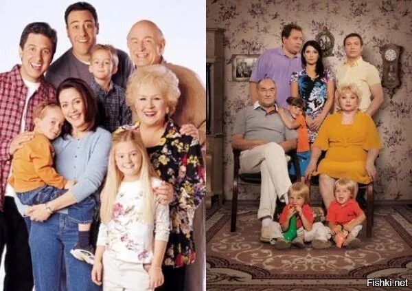 Один из самых известных примеров. «Воронины» — российская версия американского ситкома «Все любят Рэймонда» (1996–2005). Сериал транслировался на СТС с 2009 по 2019 год и включал 24 сезона. Первые 10 сезонов были адаптацией оригинала, а с 11-го сезона сюжет стал оригинальным. В центре сюжета — семья Ворониных: Костя, Вера, их дети и родители Кости, которые часто вмешиваются в жизнь семьи. В 2017 году «Воронины» попали в Книгу рекордов Гиннесса как самый продолжительный адаптированный телепроект в мире.