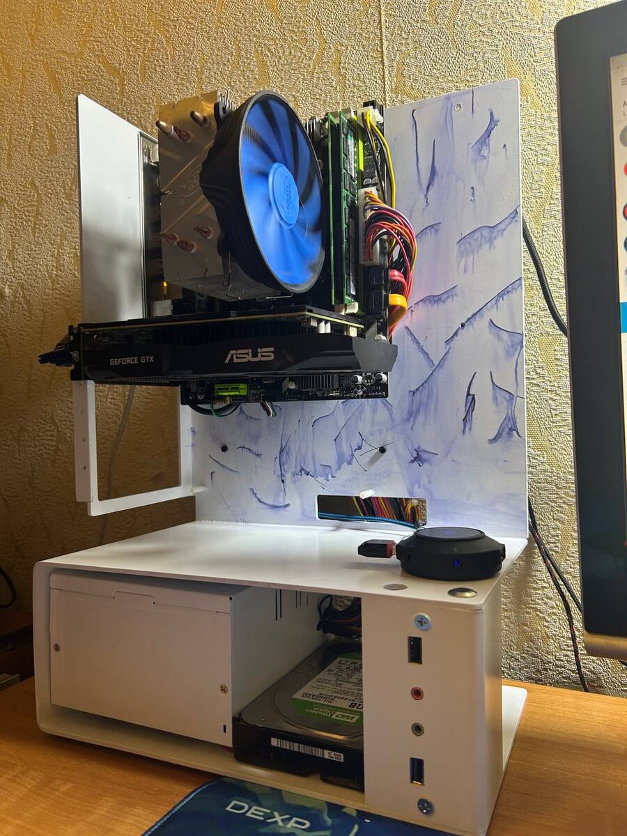 Привет! 👋 Сегодня покажу свой проект, который я давно хотел реализовать — самодельный корпус для ПК из листового металла толщиной 3 мм. Это полностью рабочий корпус под ATX и Micro-ATX платы, созданный с нуля, с чертежами для лазерной резки и участием сварки. Параметры корпуса Материал: сталь 3 мм, порошковая окраска Высота: 43 см Ширина: 29 см Глубина: 22 см Совместимость: ATX / Micro-ATX Блок питания: внизу Кабель-менеджмент: аккуратно выведен за заднюю стенку Охлаждение: корпус полностью открыт — без корпусных вентиляторов, всё продувается естественно. Как я его собирал Собирал на работе т.к. работаю на производстве все детали были спроектированы в CAD основные детали вырезаны лазером из листа 3мм это верхняя часть куда крепится материнская плата и отдельно нижняя П-шка для блока питания т.к не получалось сделать все гибы поэтому согнули отдельно и приварили лазерной сваркой друг к другу, к слову блок питания также окрашен порошком чтобы не выделялся, также вырезаны панелька с u