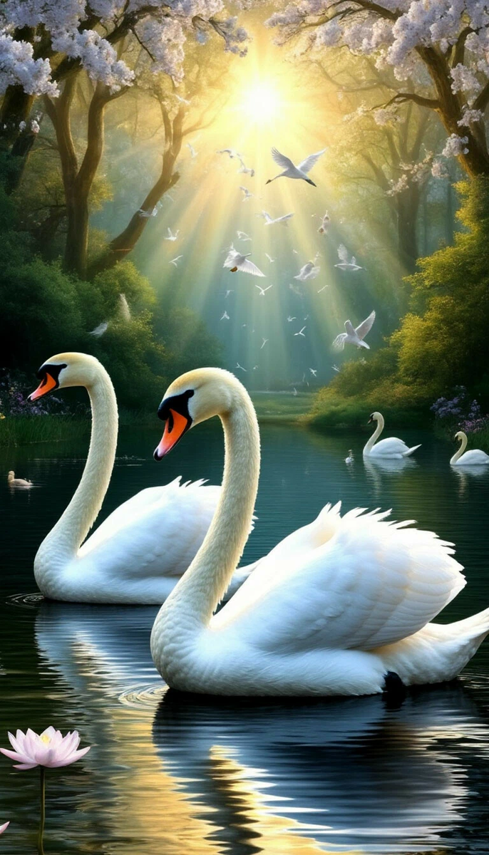 И вот душа средь белых лебедей