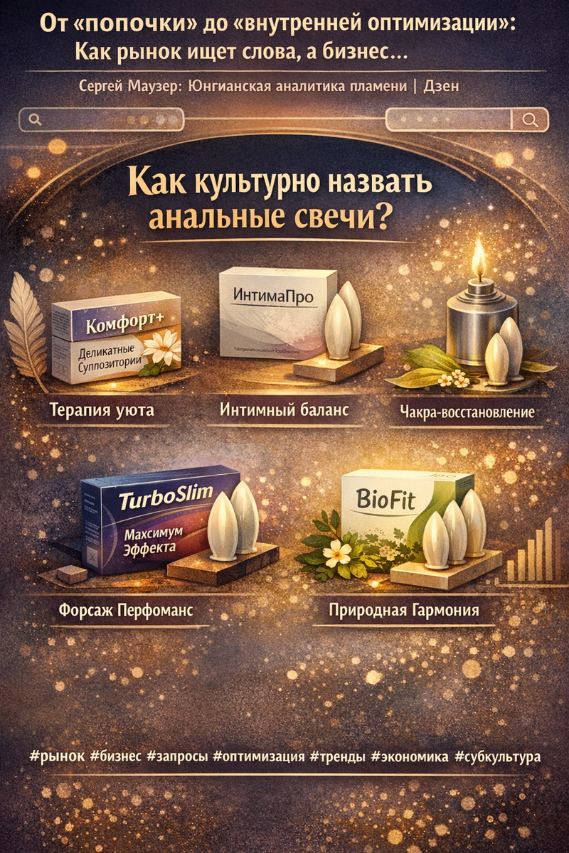 Всё началось с того, что стало мемом в профессиональных чатах маркетологов и социологов: запрос «как культурно назвать анальные свечи». За ним стоял не курьёз, а глубинная социальная трещина. С одной стороны — насущная физиологическая потребность миллионов, с другой — культурное табу, заставляющее шептаться в аптеках и краснеть перед врачом. Рынок буквально кричал о потребности в легитимации. Он просил не новый состав, а новые смыслы.