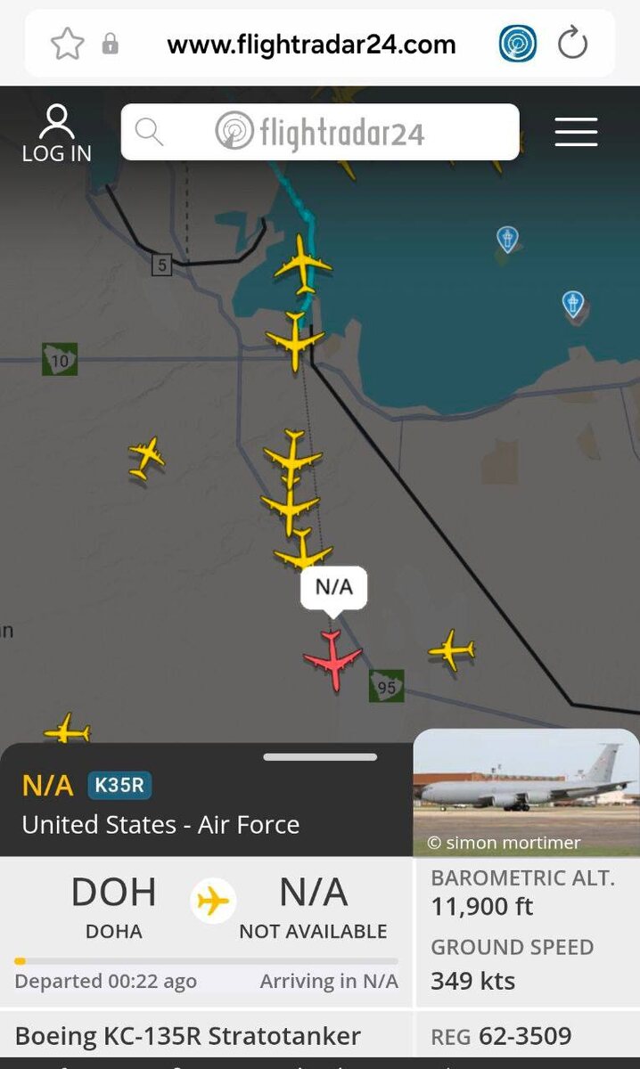 6 самолётов-заправщиков армии США покинули базу ВВС Аль-Удейд в Катаре и направились в южном направлении.