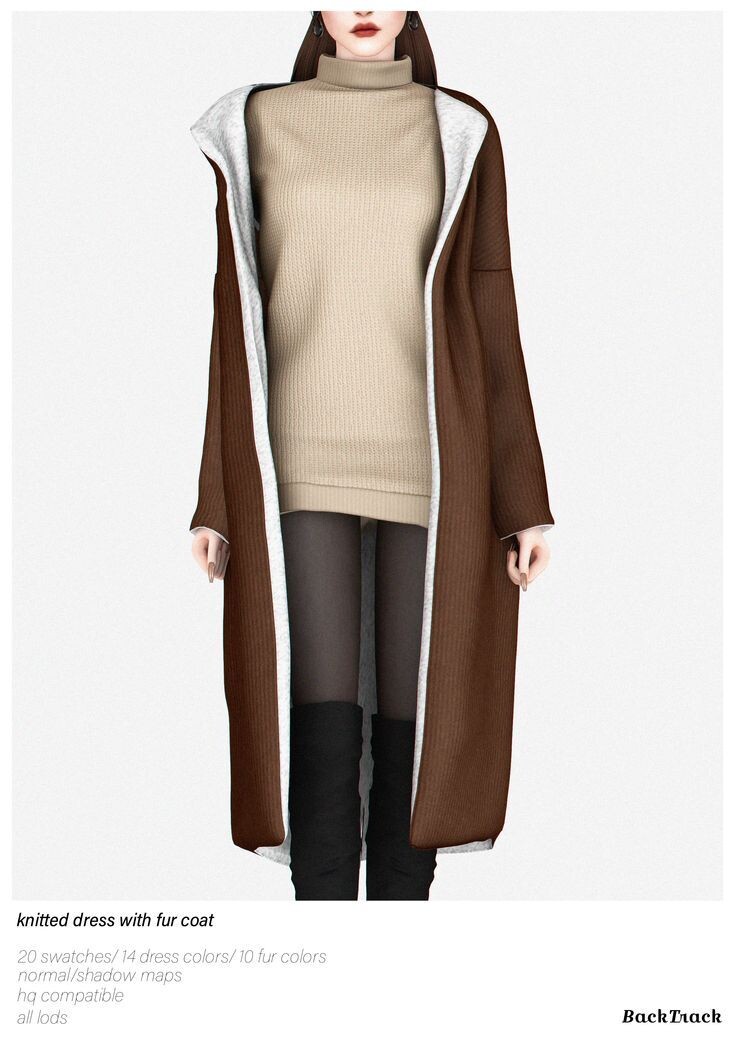 Скачать мод бесплатно BackTrack - Knitted Dress With Fur Coat для The Sims 4 - #Вполныйрост@simsfans_ru