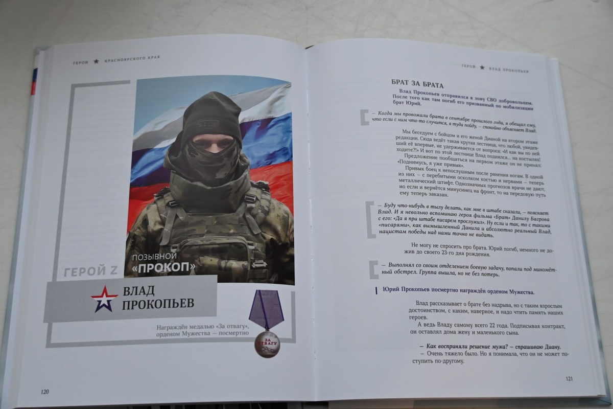В Красноярском крае издана книга «Zа Родину!» о героях-земляках, участниках специальной военной операции Особенность книги в том, что она целиком состоит из интервью и очерков о героях СВО, опубликованных в районных газетах края. Есть в этой книге и материалы о минусинцах: Тимуре Авхадееве, Михаиле Новикове, Анатолии Пеганове, Владе Прокопьеве – обо всех писала наша газета. Им мы доставим книгу лично. Но почитать её смогут все желающие — доставка в библиотеки края уже началась.