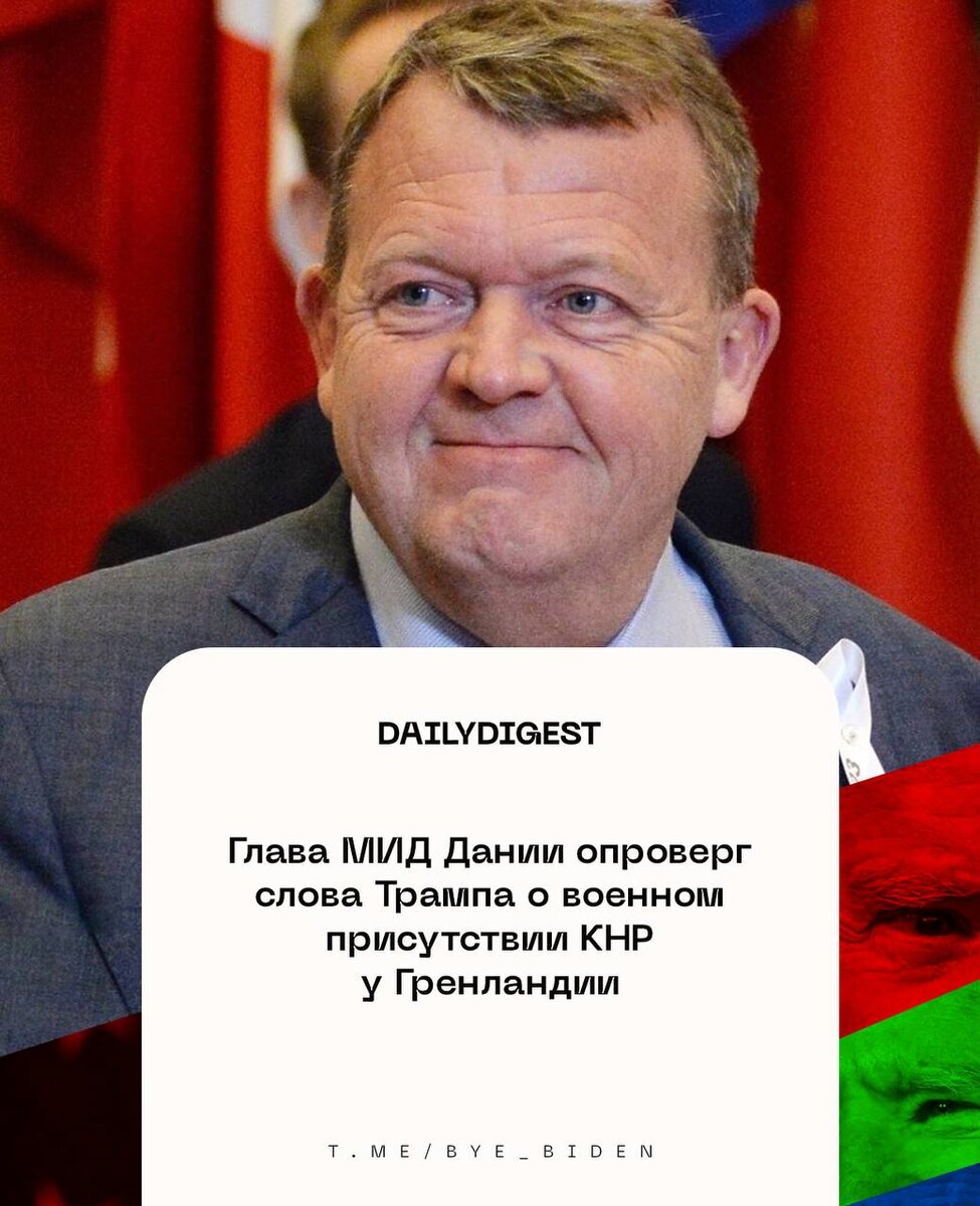 : 🔹Глава МИД Дании опроверг слова Трампа о военном присутствии КНР у Гренландии. 🔹Великобритания эвакуировала дипломатов из Ирана — The Daily Telegraph. 🔹Иран готов в виде уступки гарантировать, что его ядерная программа будет всегда оставаться мирной, в обмен на снятие санкций — глава МИД республики. 🔹Глава МИД Дании допустил, что США могут попытаться заполучить Гренландию, но усомнился, что она на это согласится. 🔹Власти Ирана не собираются казнить участников акций протеста через повешение, такой вариант действий даже не рассматривается — глава МИД исламской республики. 🔹Кае Каллас заочно предъявлено обвинение в уничтожении памятников советским воинам — Бастрыкин. 🔹В Миннеаполисе вспыхнули новые массовые протесты после стрельбы ICE по мигранту из Венесуэлы. 👍«БайБайден» в МАХ